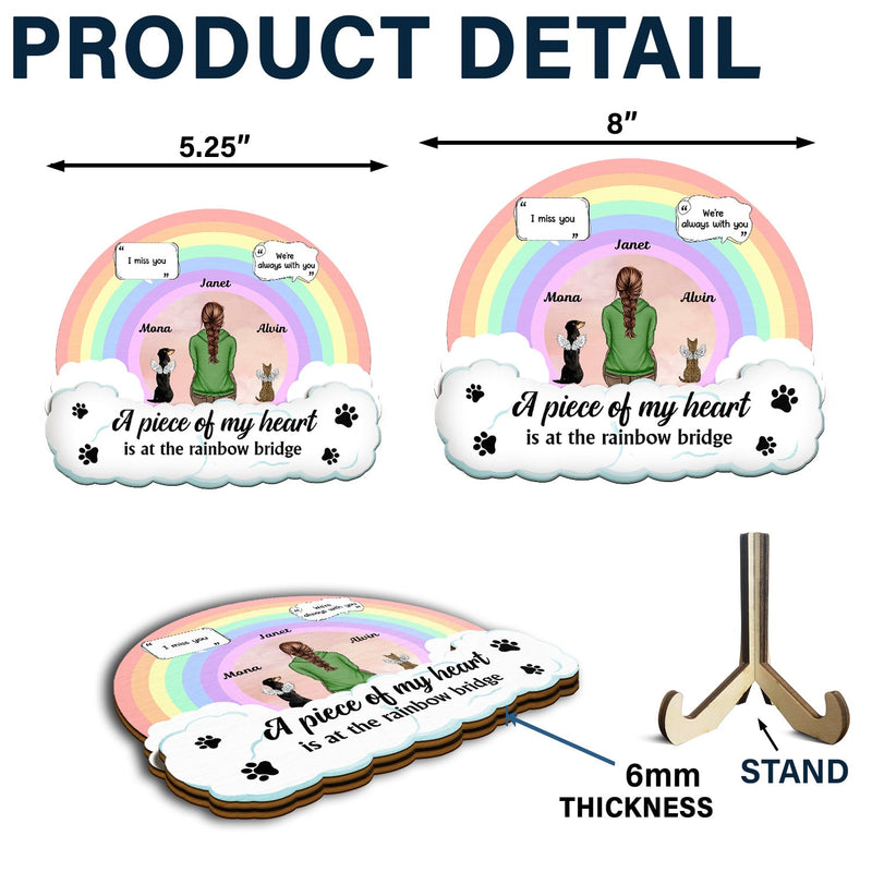 A Piece Of My Heart, Dog, Cat - Memorial Gift For Pet Lover - Personalized 2-Layered Wooden Plaque With Stand