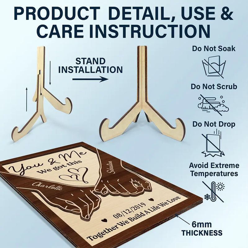 Couple Holding Hands Together Till Our Last Breath - Personalized 2-Layered Wooden Plaque With Stand