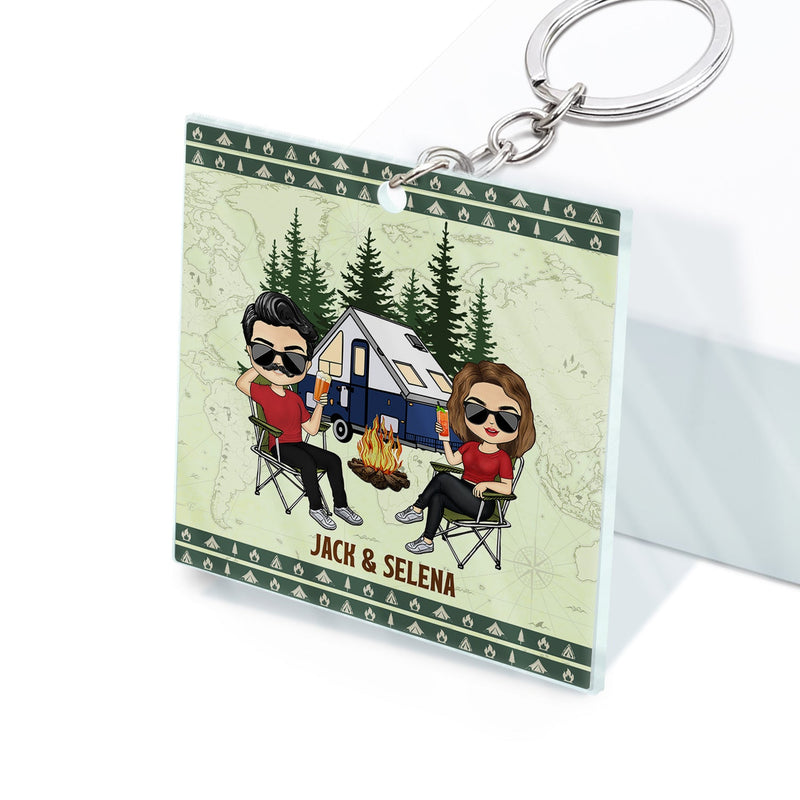 Happy Campers Adventure Awaits - Gift For Camping Couples, Wife, Husband - Personalized Custom Acrylic Keychain