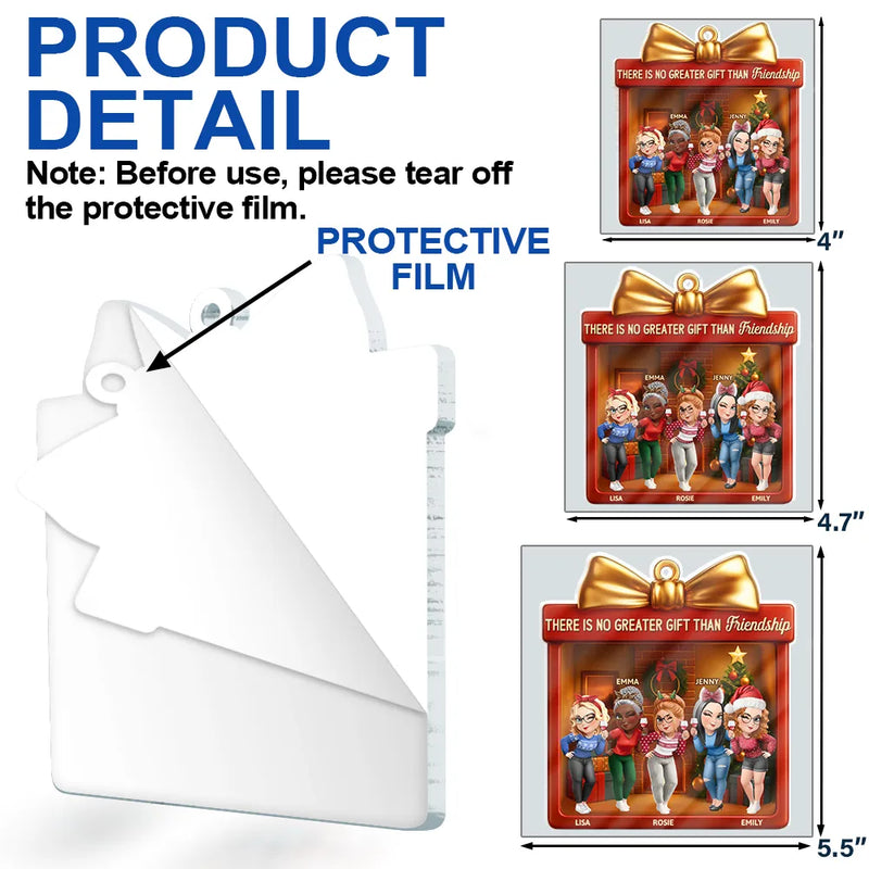 Discover the magic of friendship with the There Is No Greater Gift Than Friendship 3D Effect - Personalized Custom Shaped Acrylic Ornament. A meaningful gift for bestie, sisters, or colleagues on Christmas, Thanksgiving, birthdays, Mother’s Day, or Father’s Day. Thoughtful and joyful, it’s a keepsake that will be truly appreciated.