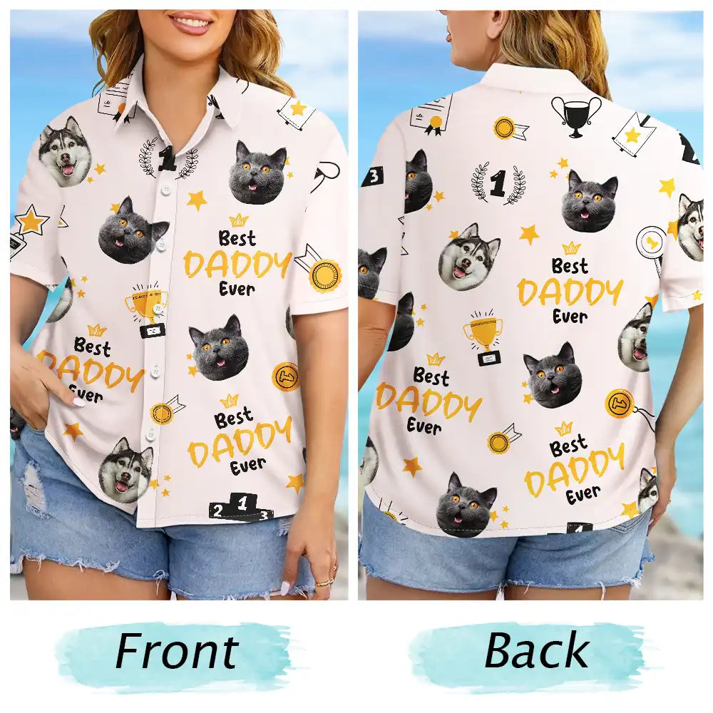Custom Photo Best Dog Dad Ever Trophy Pet Daddy - Personalized Hawaiian Shirt