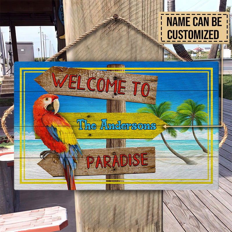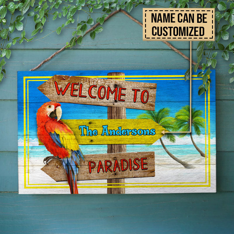 Personalized Beach Welcome To Paradise Customized Wood Rectangle Sign
