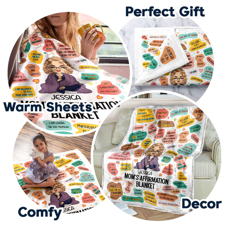 Mom's Affirmation Blanket - Gift For Mother - Personalized Custom Fleece Blanket
