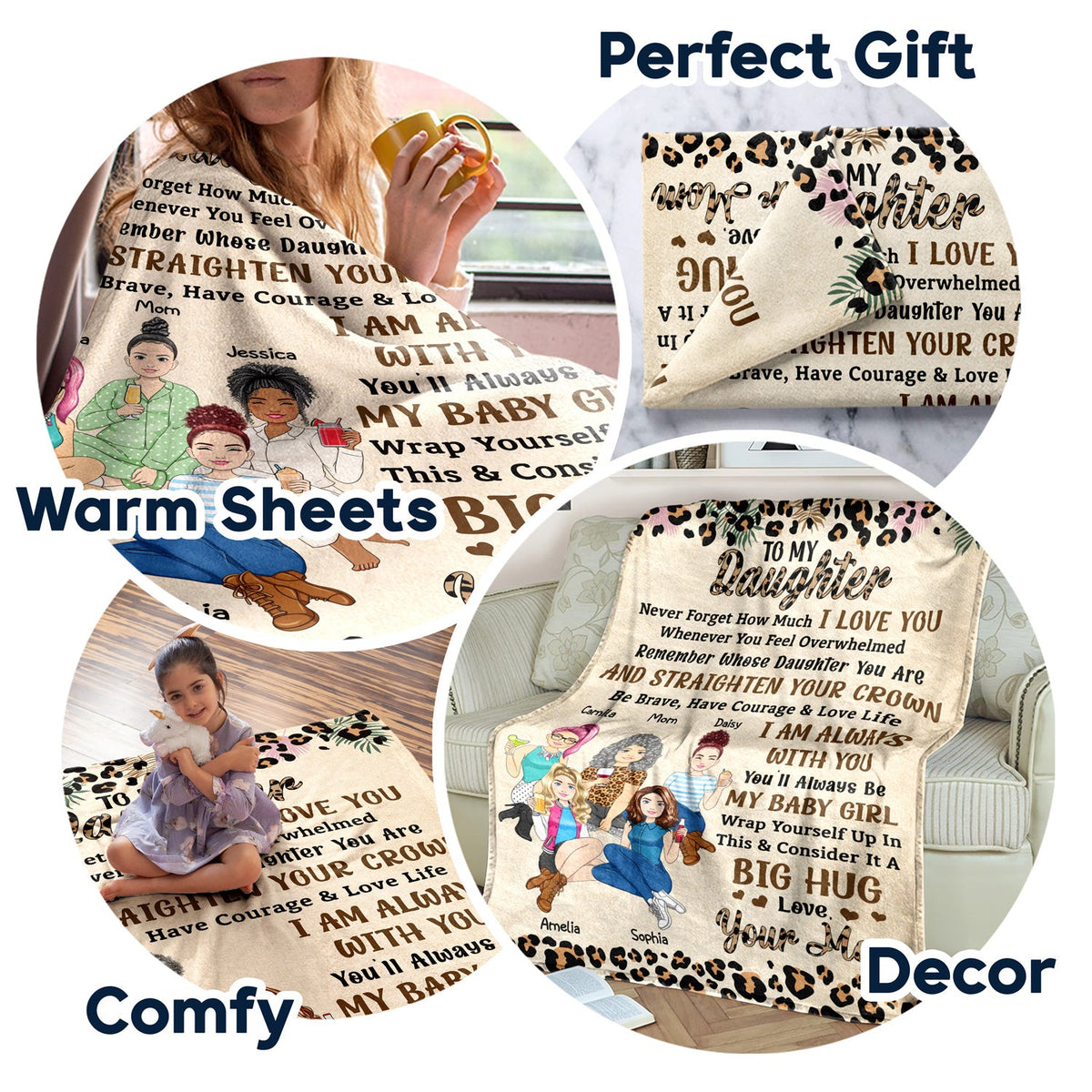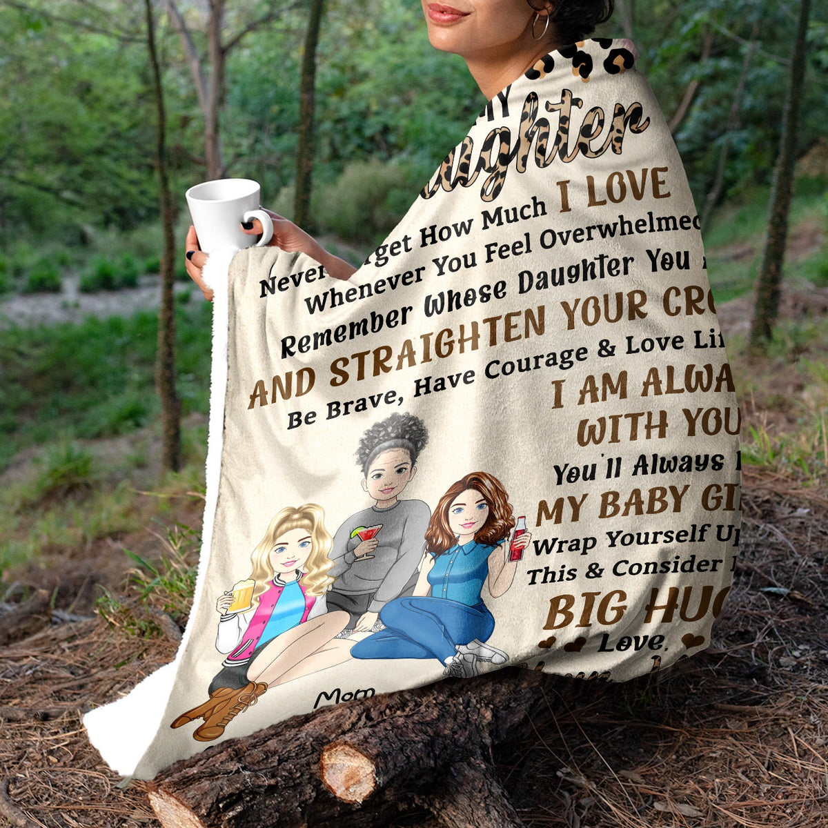 Message: "To my daughter, never forget how much I love you. Whenever you feel overwhelmed, remember whose daughter you are and straighten your crown. Be brave, have courage & love life. I am always with you. You’’l always be my baby girl. Wrap yourself up in this & consider it a big hug. Love, your mom".
