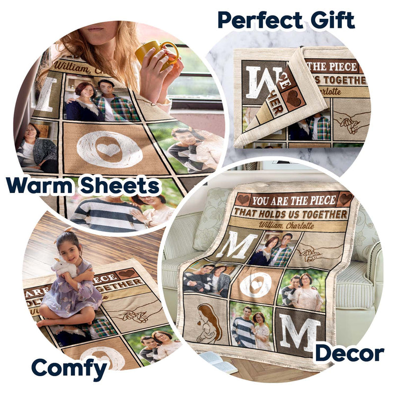 Custom Photo Mom You Are The Piece That Holds Us Together - Birthday, Loving Gift For Mother - Personalized Custom Fleece Blanket