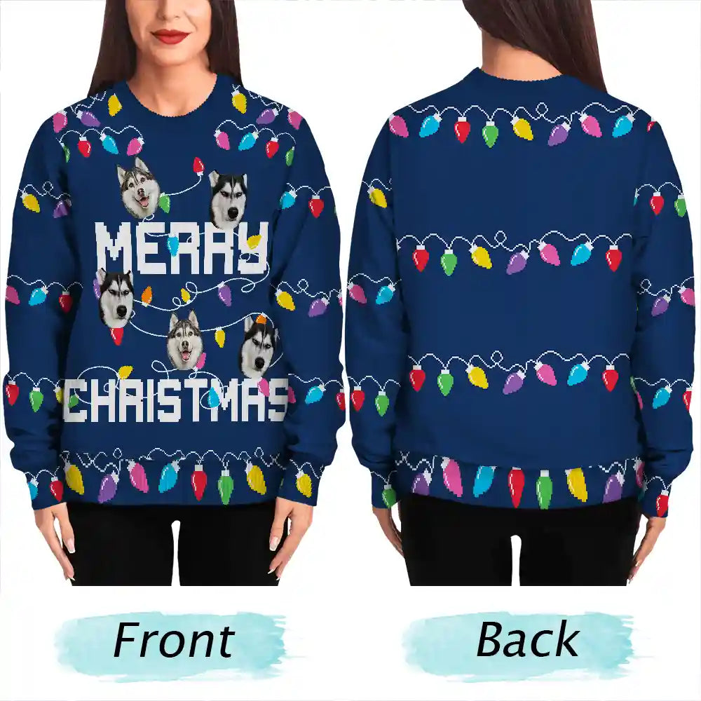 Christmas Custom Photo Family Christmas Tree - Personalized Unisex Ugly Sweater
