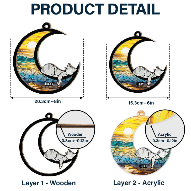 Celebrate the enchanting charm of felines with our "Sleeping Cat On The Moon Ver 2 - Personalized Window Hanging Suncatcher Ornament." Ideal for Cat Lovers, Cat Moms, and Cat Dads, this ornament makes a heartfelt gift for Christmas, Thanksgiving, Mother’s Day, Father’s Day, birthdays, and anniversaries.