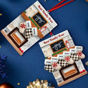 Hanging Socks Cozy Fireplace Family Friend Team - Personalized Embossed Ceramic Ornament