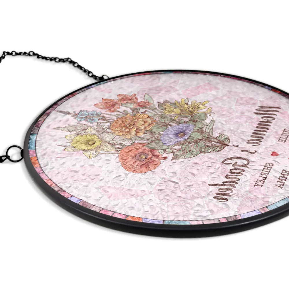 Grandma's Garden Nana Mom Birth Flower - Personalized Stained Glass Window Hanging Suncatcher