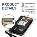 • Convenient design - This product is connected to a removable wrist strap. The zipper-around design ensures that nothing falls out and also makes it easy to access your cards or money.