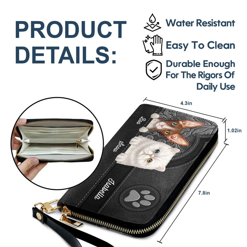 Cute Cats Aesthetic Pattern - Birthday, Loving Gift For Cat Mom, Cat Lovers - Personalized Leather Long Wallet