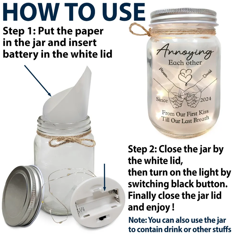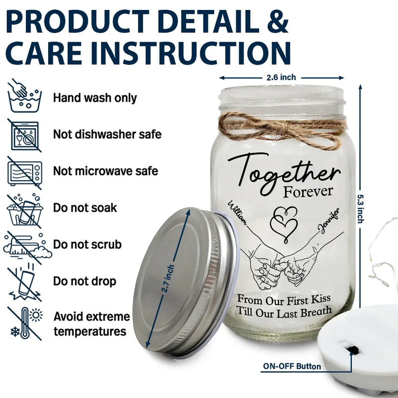 This thoughtful gift can be given for anniversaries, Valentine's Day, Thanksgiving, birthdays, or just to surprise your loved one on a regular day. The Couple Hold Hand From Our First Kiss - Personalized Mason Jar Light will be appreciated for its sentimental value and the joy it brings into your home. It’s a lovely way to keep the memories of your first kiss alive and glowing, making your love feel even more special and unforgettable.
