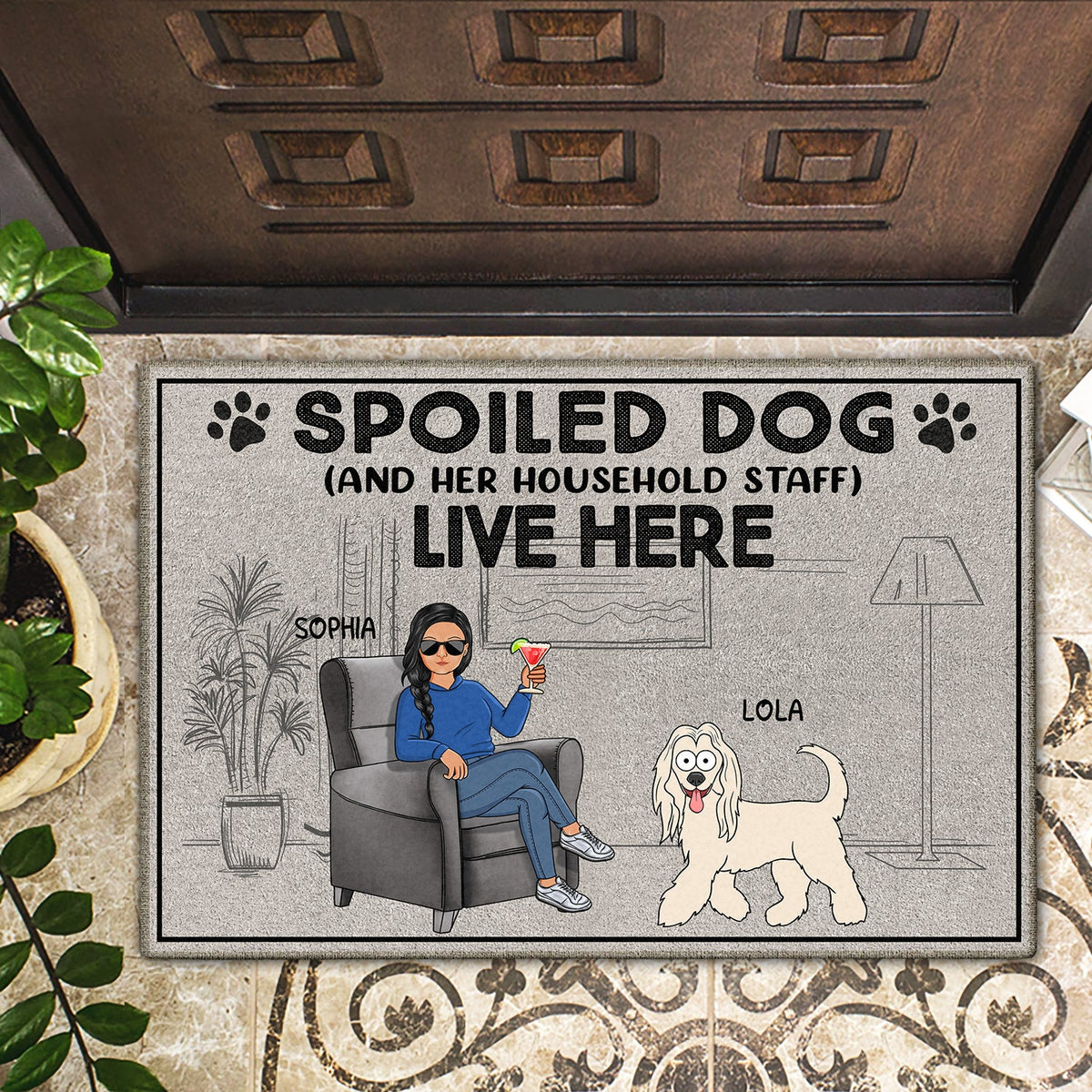 Spoiled Dogs And Their Household Staff Live Here - Gift For Dog Lovers, Couples - Personalized Doormat