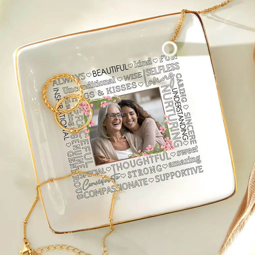 Custom Photo Hugs & Kisses - Birthday, Loving Gift For Mom, Mum, Mother, Nana, Grandma - Personalized Ring Dish