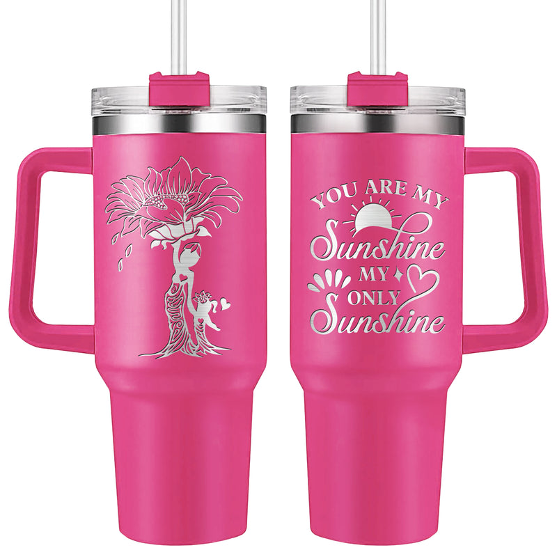 Wander Prints Gift For Mom - You Are My Sunshine - Pink Engraved 40oz Tumbler - Mother's Day Birthday Gift AZCS