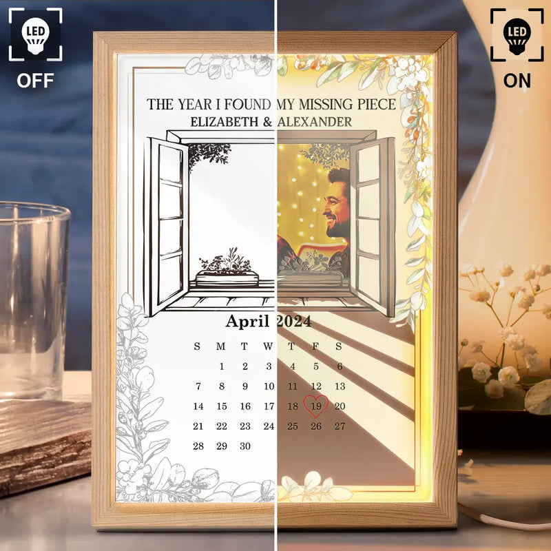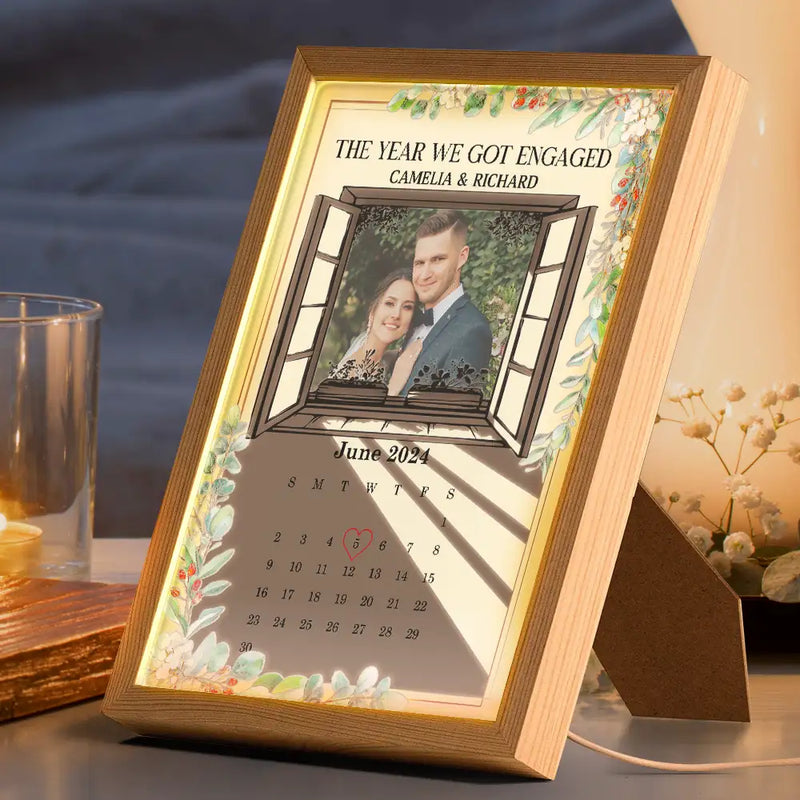Custom Photo Pencil Drawing Couple The Year We Got Married Light Painting - Personalized Light Up Picture Frame