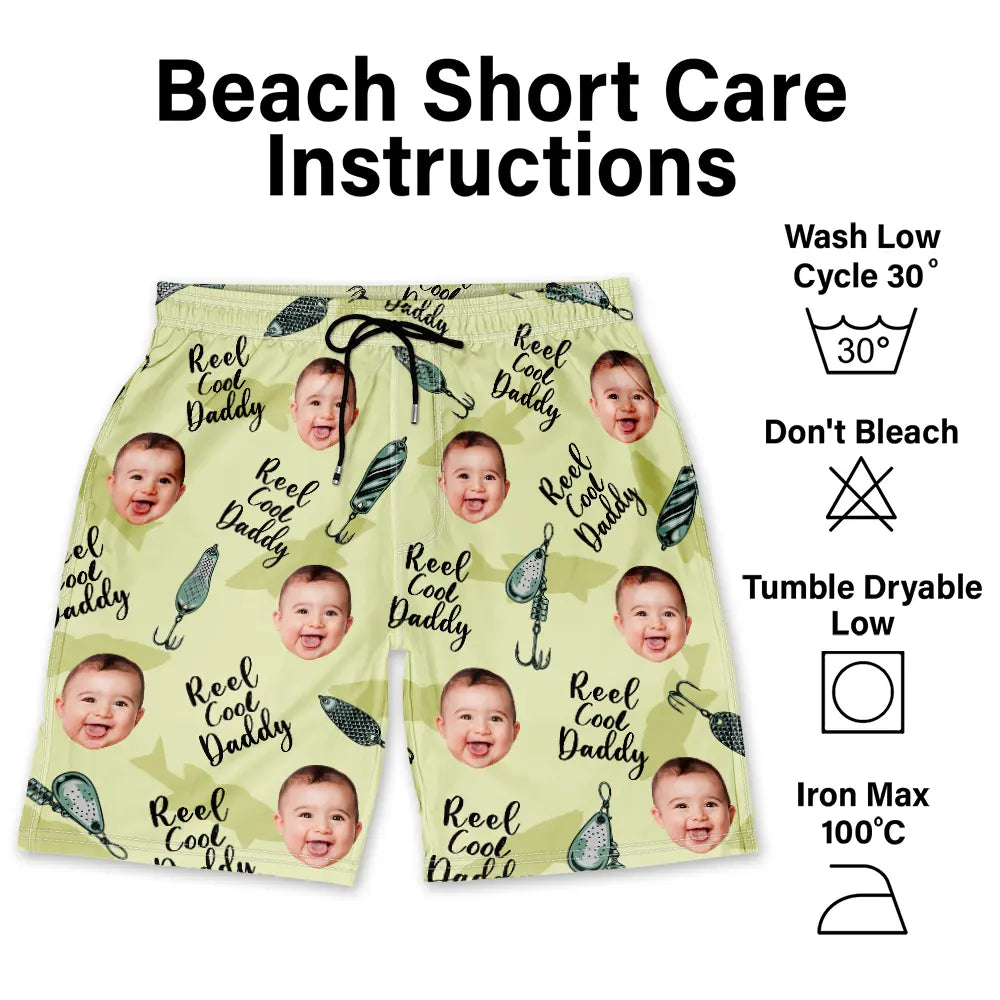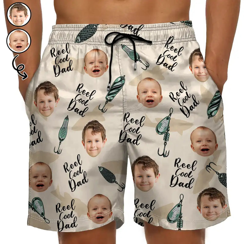 Custom Photo Reel Cool Dad - Personalized Unisex Beach Shorts
