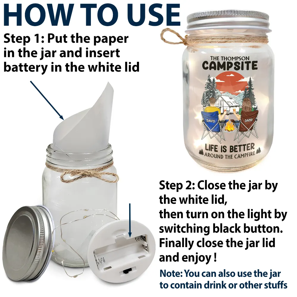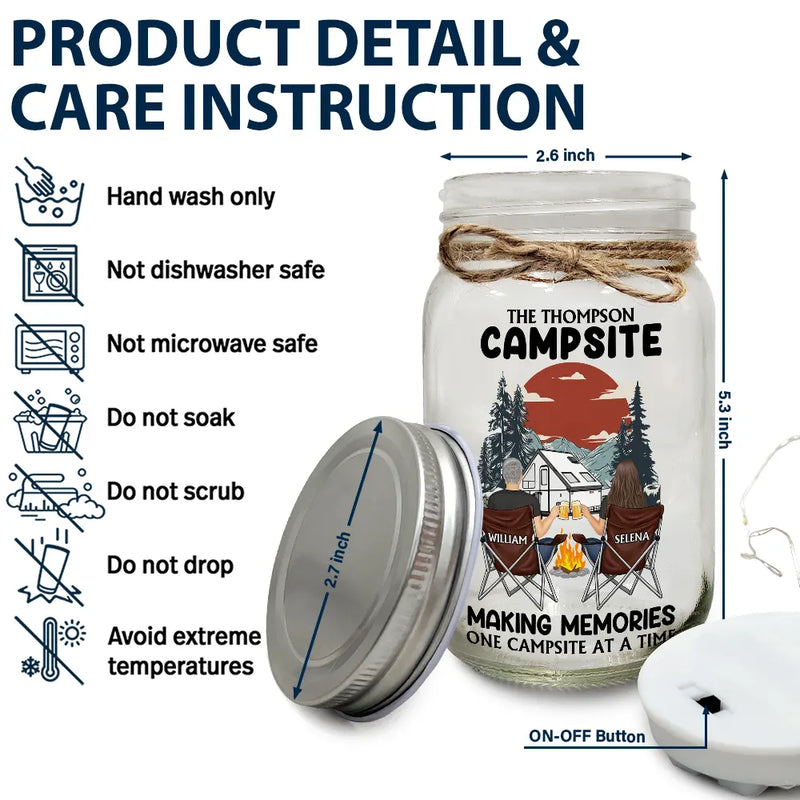 Husband & Wife Camping Partners For Life - Personalized Mason Jar Light