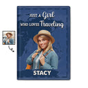 Custom Photo Cartoon Portrait Just A Girl Who Loves Traveling - Personalized Passport Cover, Passport Holder