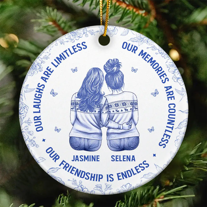 Besties Our Laughs Are Limitless Best Friends Toile - Personalized Circle Ceramic Ornament