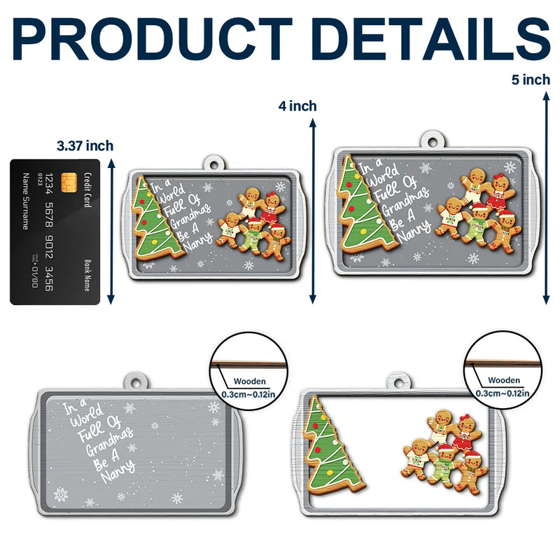 Gingerbread Cookie World Full Of Grandmas - Personalized 2-Layered Wooden Ornament