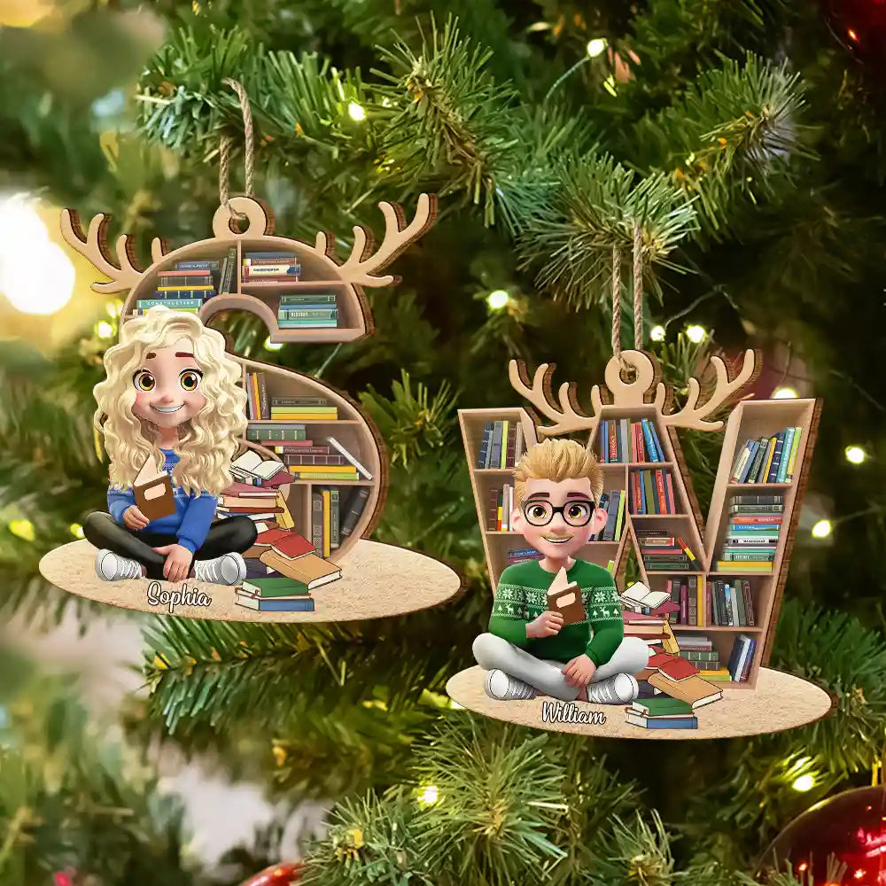 Reading Girl Monogram Bookish Keepsake - Personalized Custom Shaped Wooden Ornament