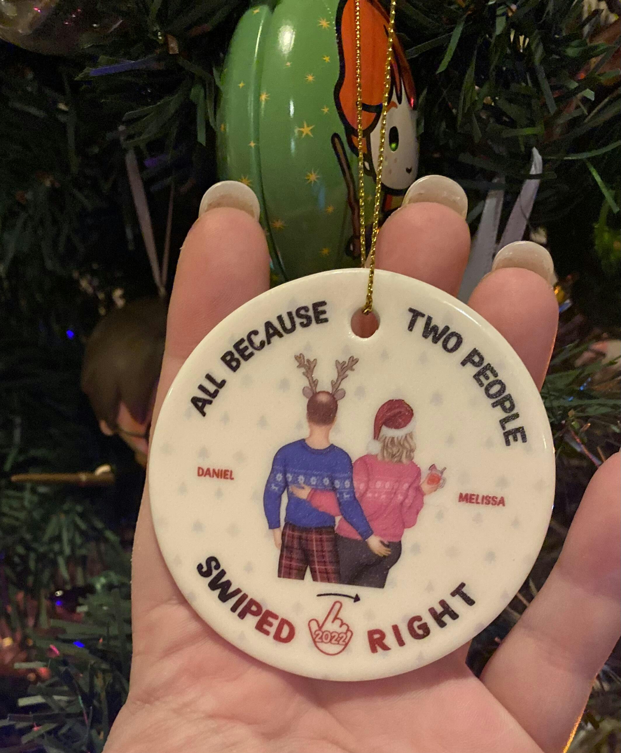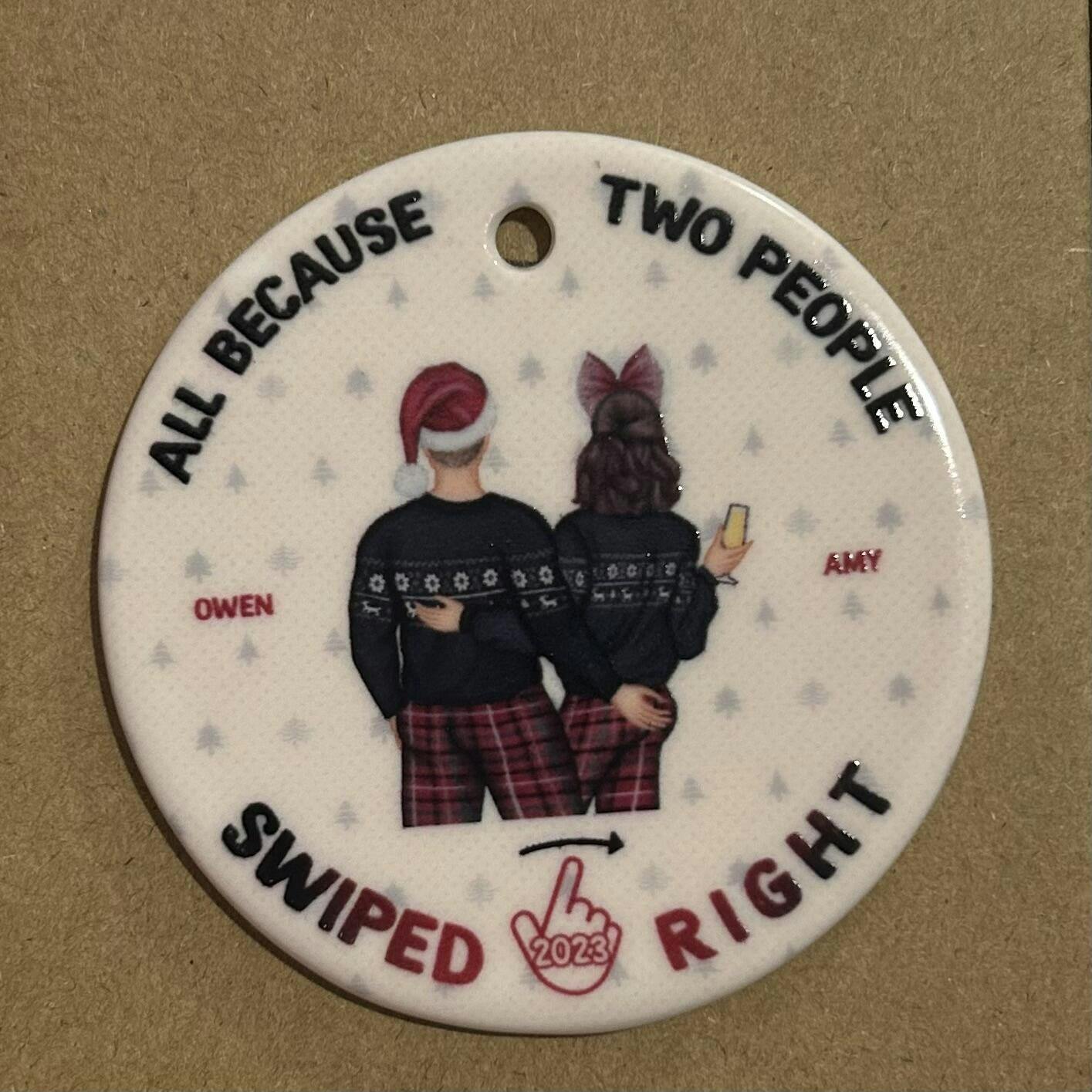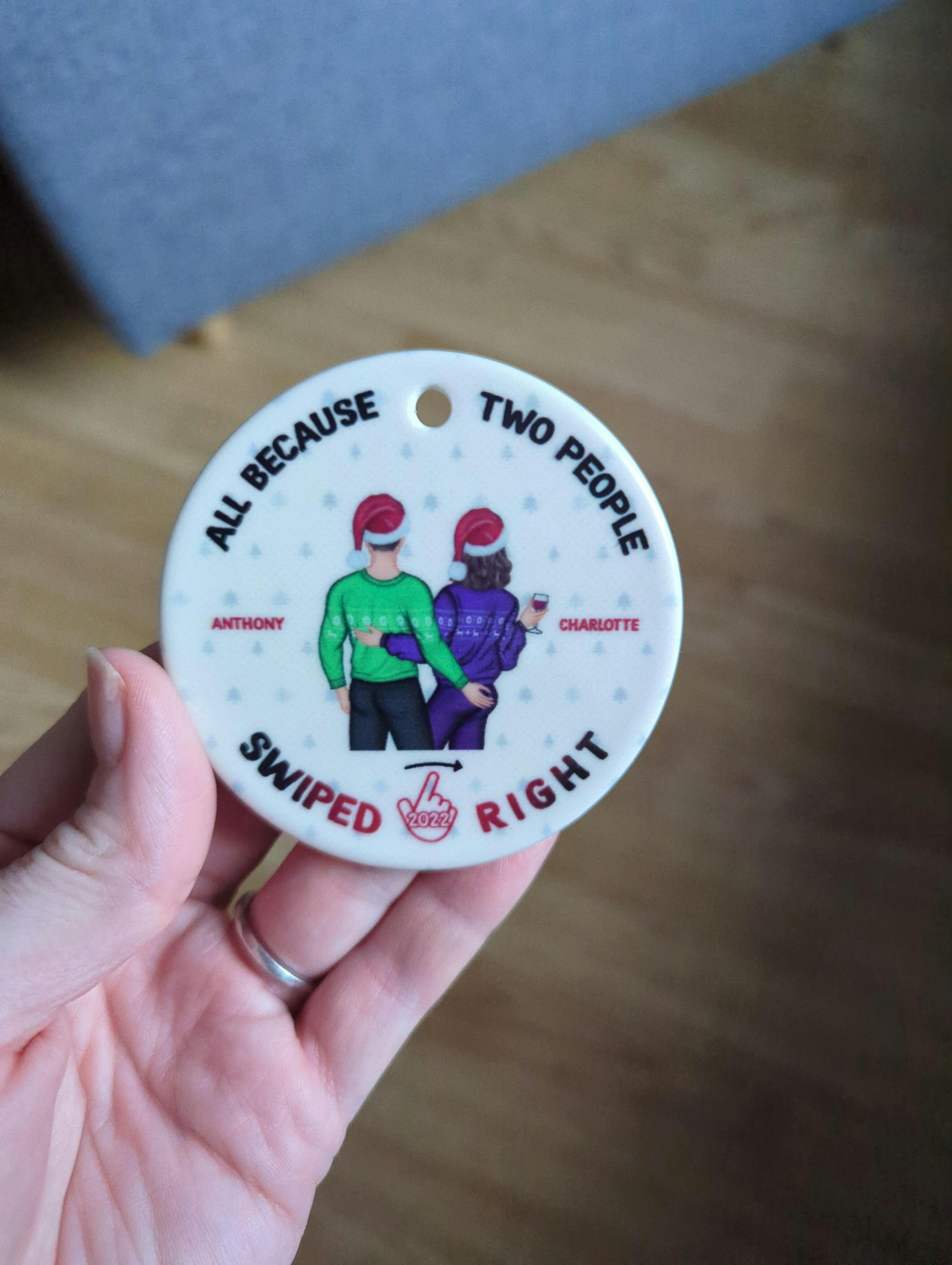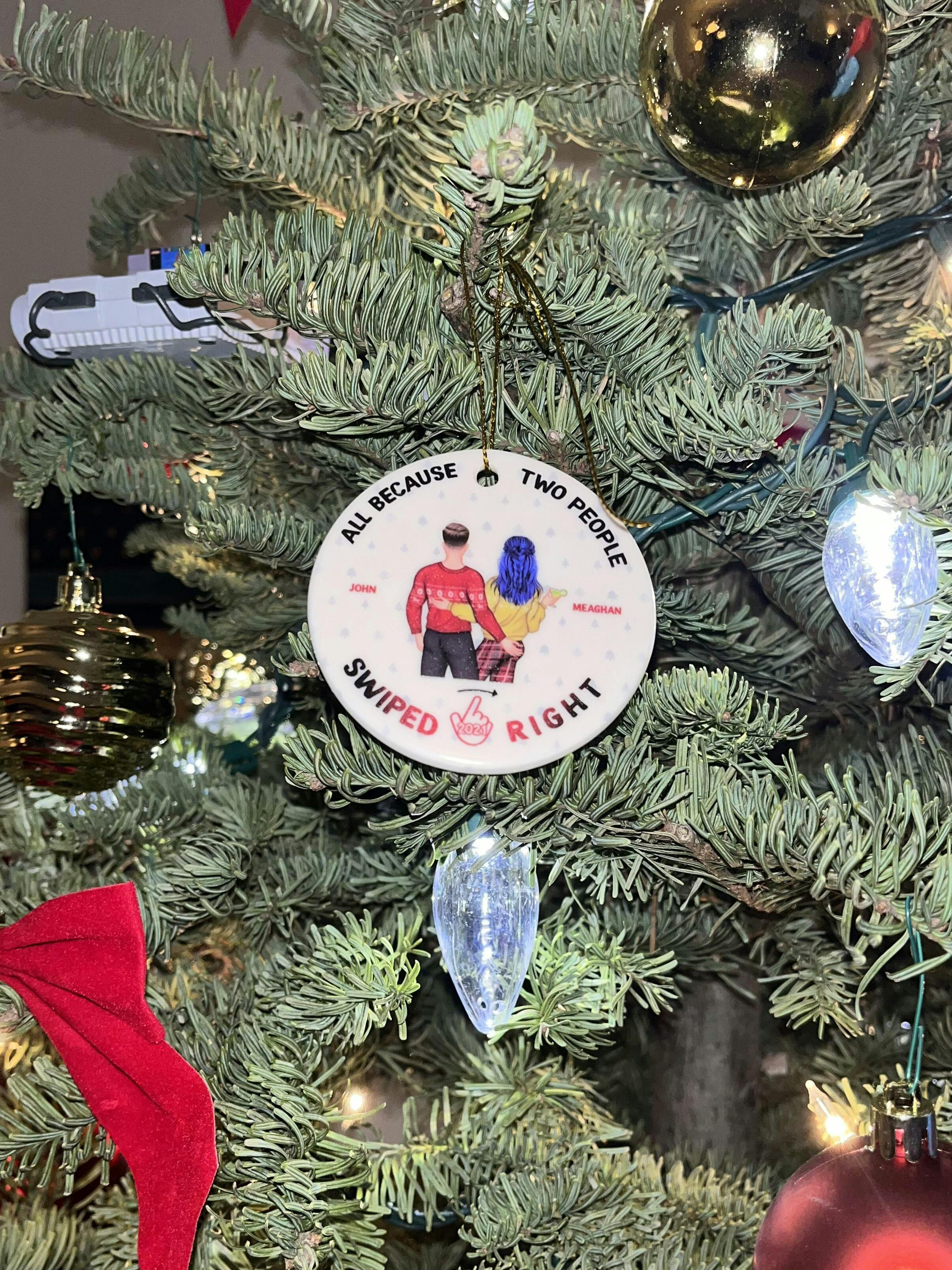 Christmas Couple Swiped Right - Personalized Circle Ceramic Ornament