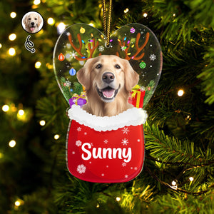Custom Photo Santa Bag - Gift For Pet Lovers - Personalized Custom Shaped Acrylic Ornament