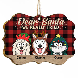 Dear Santa We Really Tried - Christmas Gift For Dog Lovers, Cat Lovers - Personalized Medallion Wooden Ornament