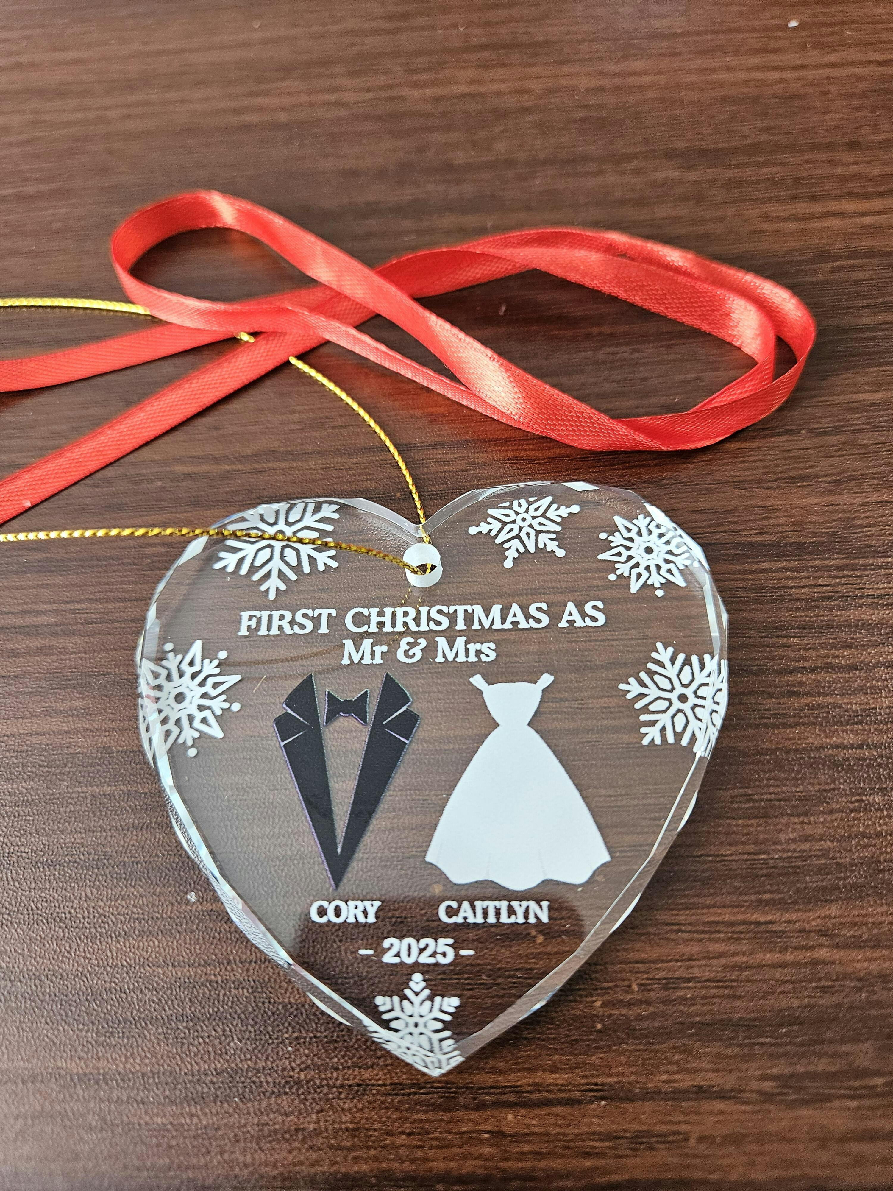 Commemorate your first Christmas as a married couple with the First Christmas As Married Couples - Personalized Heart Shaped Glass Ornament. This elegant and heartfelt ornament is an ideal gift for couples, including husbands, wives, boyfriends, and girlfriends, on Valentine’s Day, Mother’s Day, Father’s Day, Thanksgiving, Christmas, birthdays, and anniversaries.