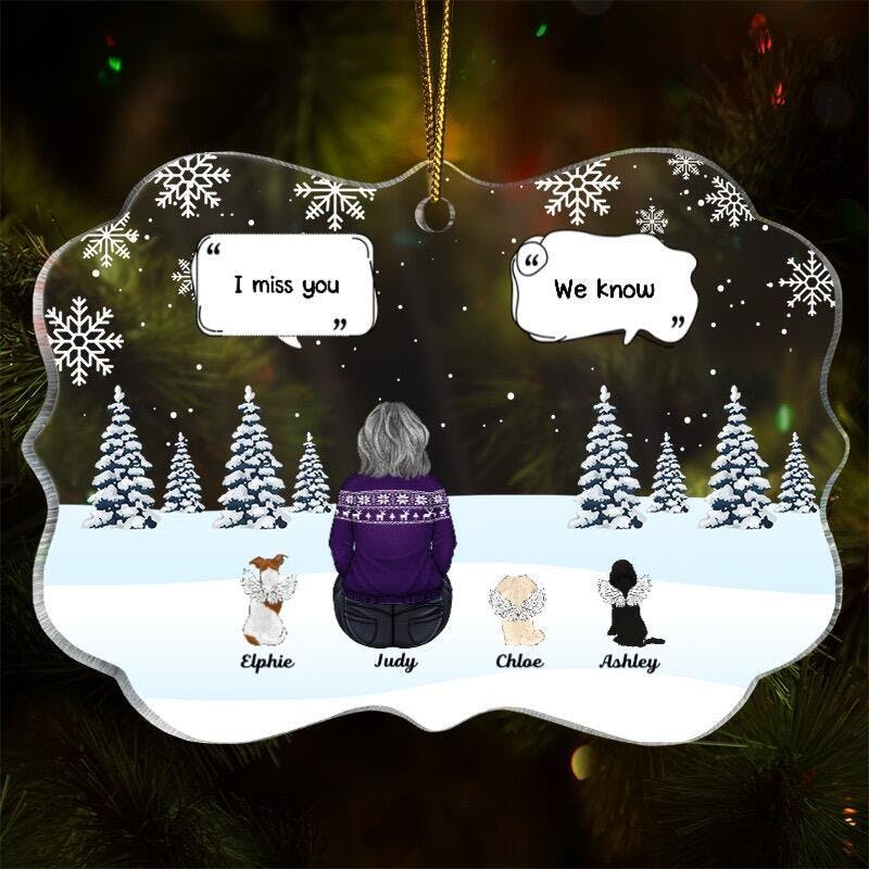 I Miss You - Christmas Memorial Gift For Pet Lovers, Dog Mom, Dog Dad, Cat Mom, Cat Dad - Personalized Medallion Acrylic Ornament