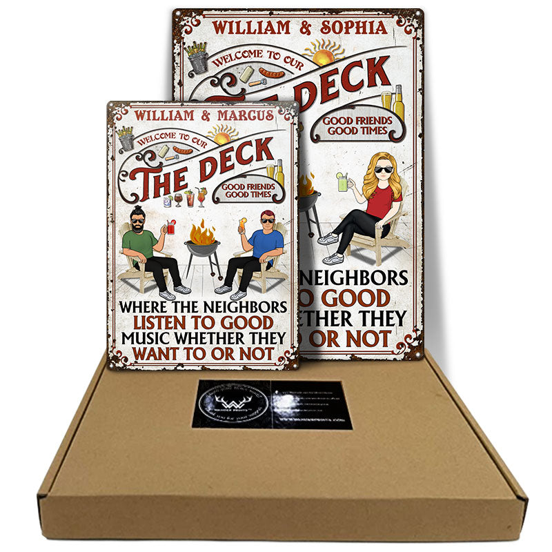 Family Couple Listen To The Good Music Deck - Personalized Custom Classic Metal Signs