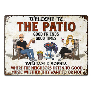 The Patio Grilling Listen To The Good Music Couple Husband Wife Pride - Backyard Sign - Personalized Custom Classic Metal Signs