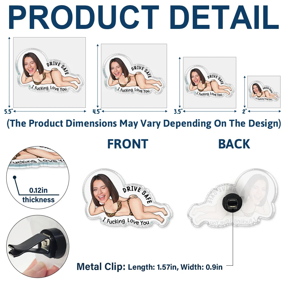 Custom Photo Couple Drive Safe I Freaking Love You - Personalized Acrylic Car Vent Clip