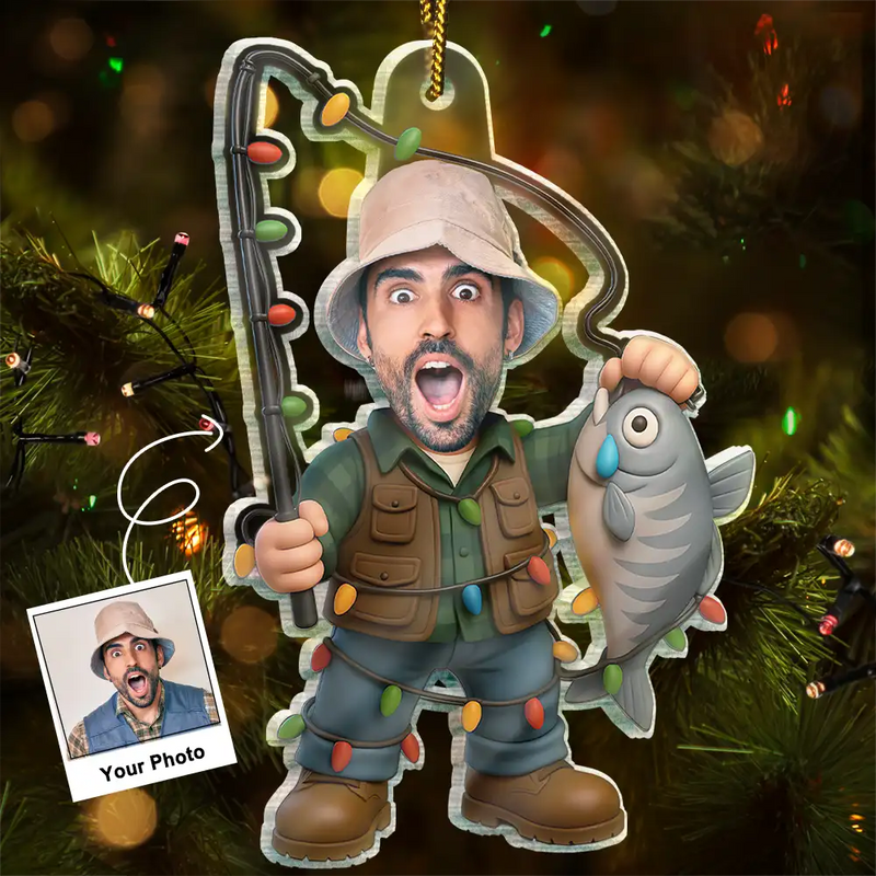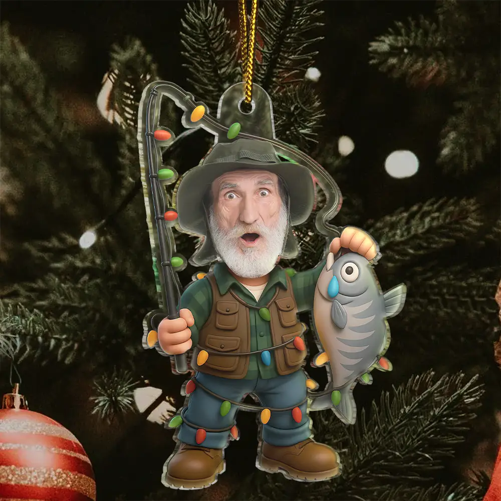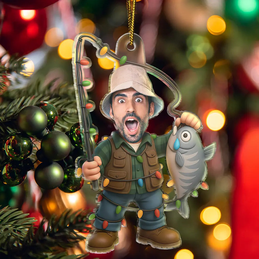 Custom Photo Funny Face Cut Fishing Man - Personalized Acrylic Photo Ornament