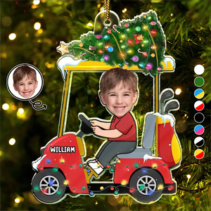 Custom Photo Funny Face Golf Cart Kid Baby - Personalized Acrylic Photo Ornament