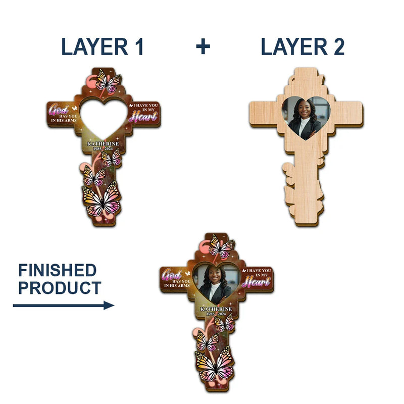 Honor the memory of loved ones with the Custom Photo God Has You In His Arms - Personalized Custom Shaped Car Visor Clip, a meaningful tribute for any occasion. This unique piece is a heartfelt gift for Grandparent, grandpa, grandma, Family, Parents, Father, Mother, Sibling, Sister, Brother, kid, daughter, son, and besties on Mother's Day, Father's Day, Thanksgiving, Christmas, birthdays, and anniversaries. It's a thoughtful, sad memorial gift that can comfort those experiencing bereavement.