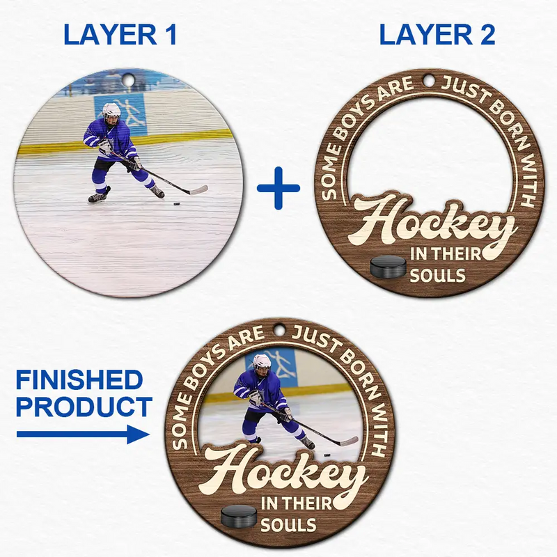 Custom Photo Born With Baseball In Their Souls - Personalized 2-Layered Wooden Ornament