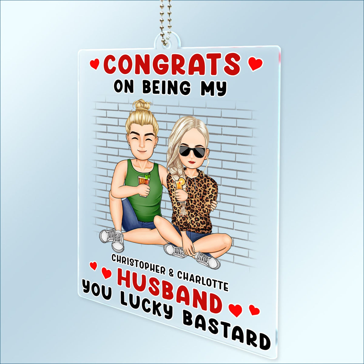 Congrats On Being My Husband - Anniversary, Funny Gift For Couples, Family - Personalized Acrylic Car Hanger