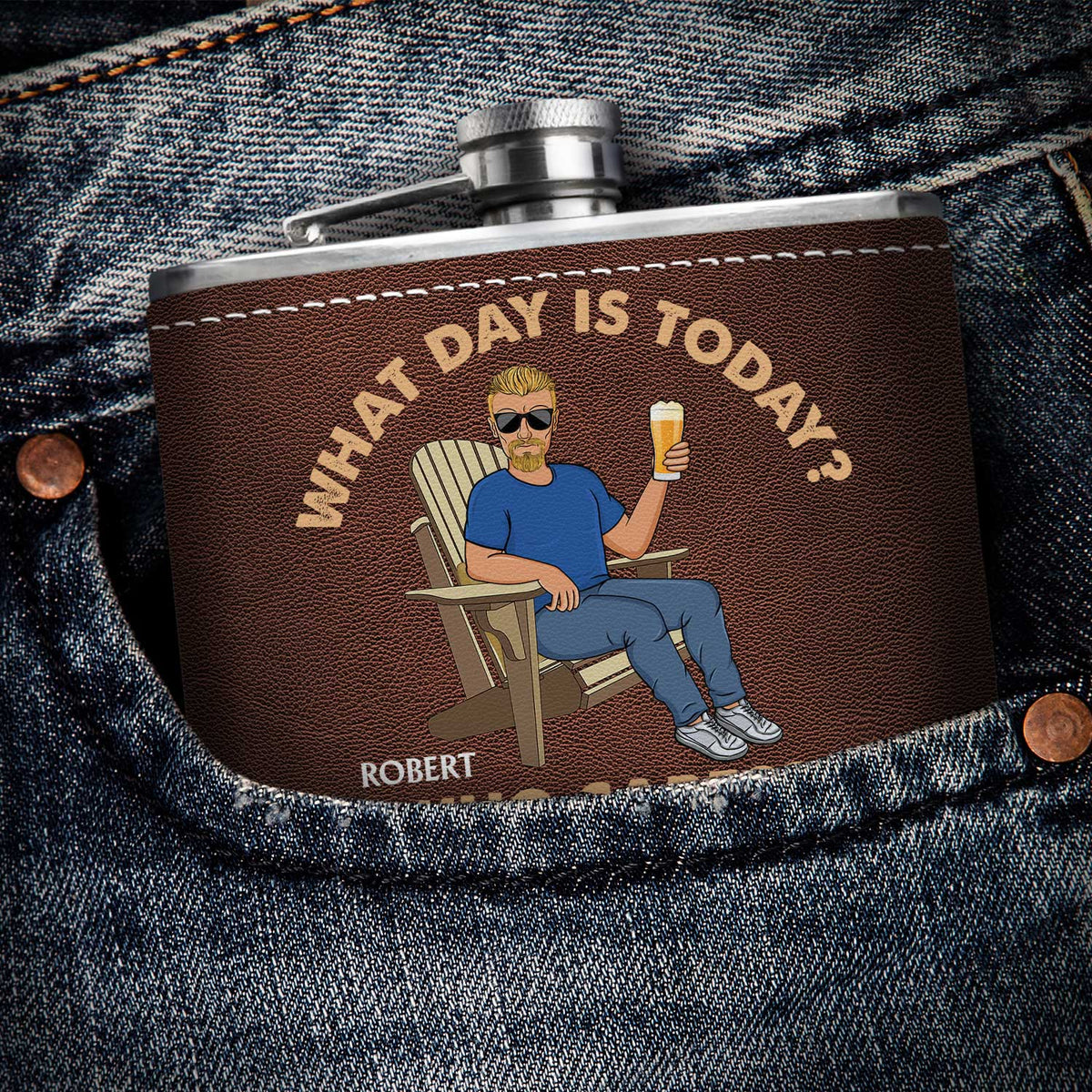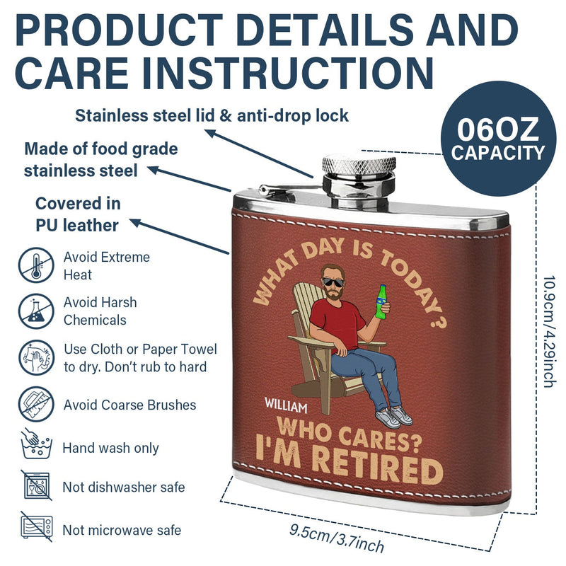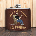 Retro What Day Is Today Who Cares - Gift For Dad, Grandpa, Retirement Gift - Personalized Hip Flask