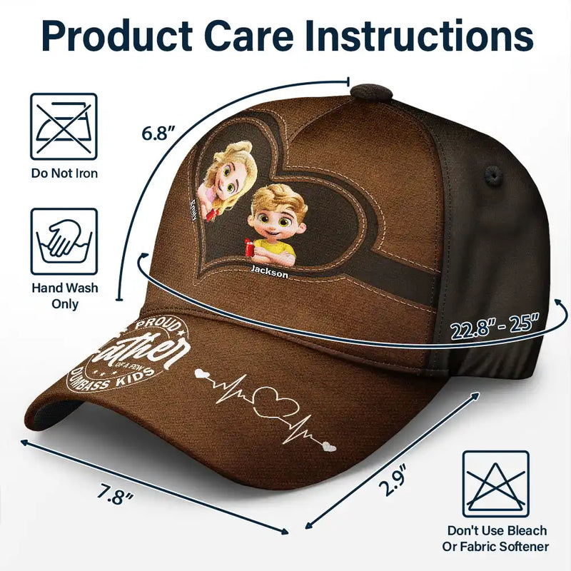 Make any father or grandpa feel joyfully appreciated with this unique, personalized cap. It’s more than a hat – it’s a badge of fatherhood, laughter, and love from his kids or grandkids. A cool, funny gift that’s sure to become his new favorite!