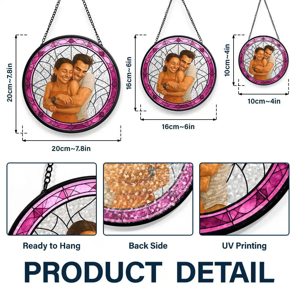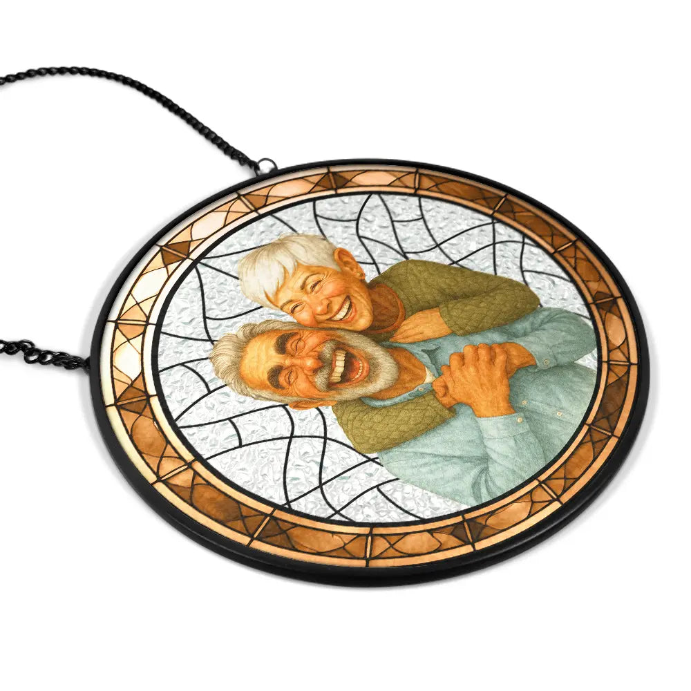 Custom Photo Caricature Funny Couple Family - Personalized Stained Glass Window Hanging Suncatcher