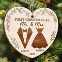 First Christmas As Mr & Mrs Wedding Couples - Personalized Custom Shaped Wooden Ornament