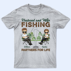 Fishing Partners For Life Husband Wife - Couple Gift - Personalized Custom T Shirt