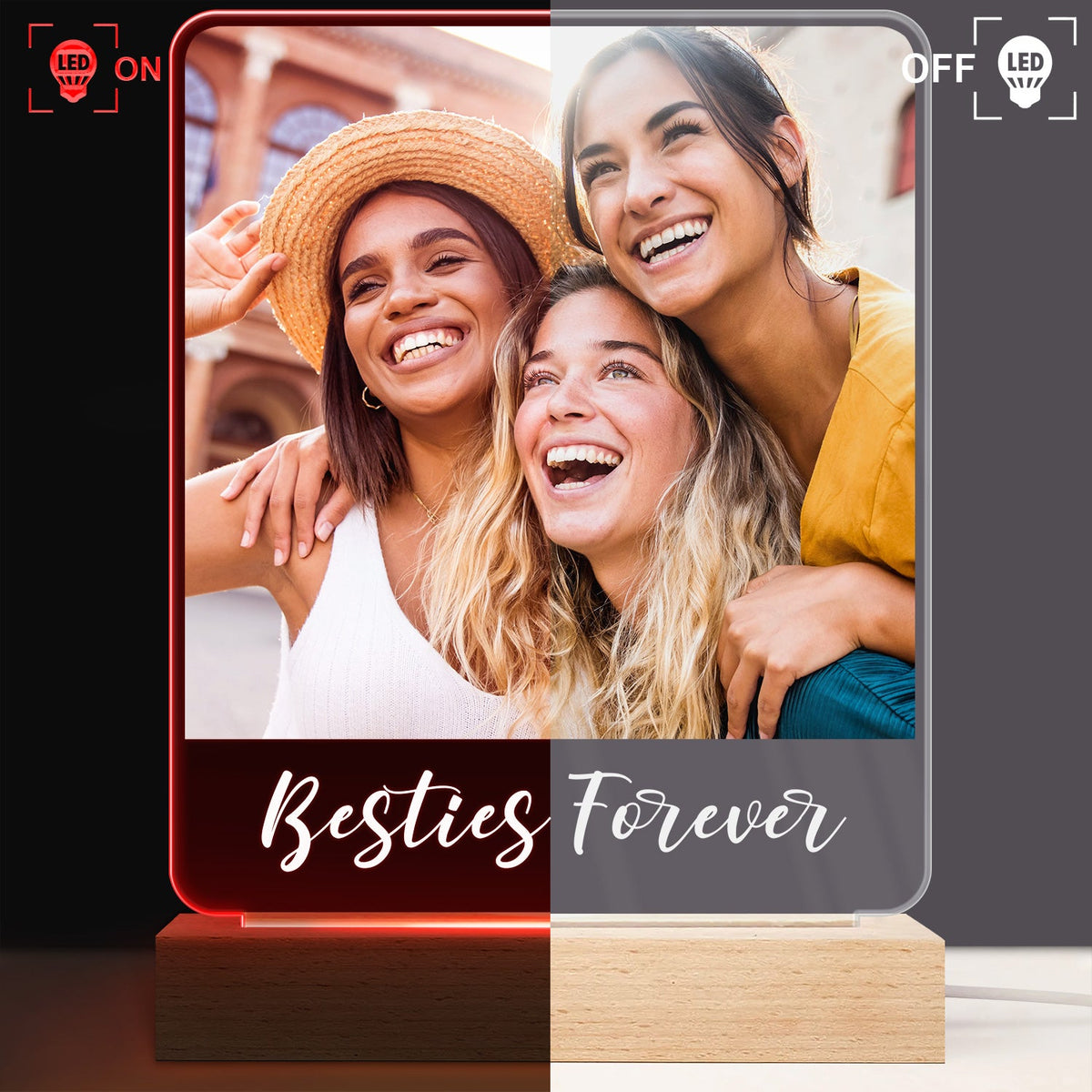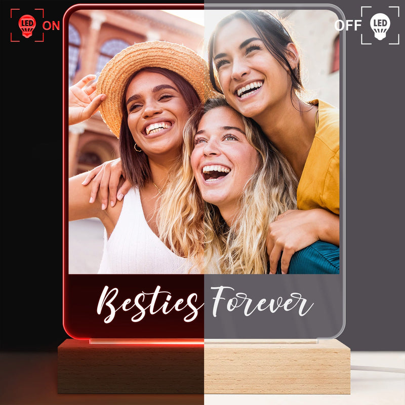 Custom Photo Family - Gift For Couples, Besties, Sibling, Dog Lovers, Cat Lovers - Personalized 3D Led Light Wooden Base