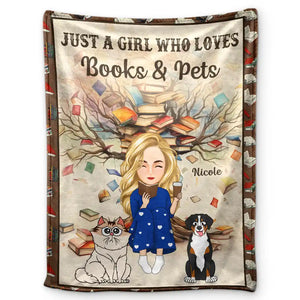 Just A Girl Who Loves Books & Pets - Personalized Fleece Blanket, Sherpa Blanket