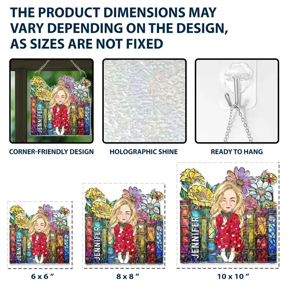 Reading Girl With Books - Personalized Window Corner Suncatcher