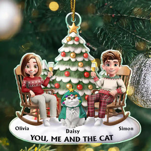 You & Me And The Cats 3D Effect Couple Sitting - Personalized Custom Shaped Acrylic Ornament