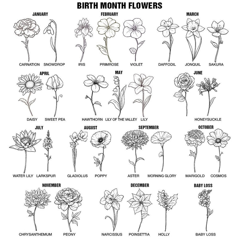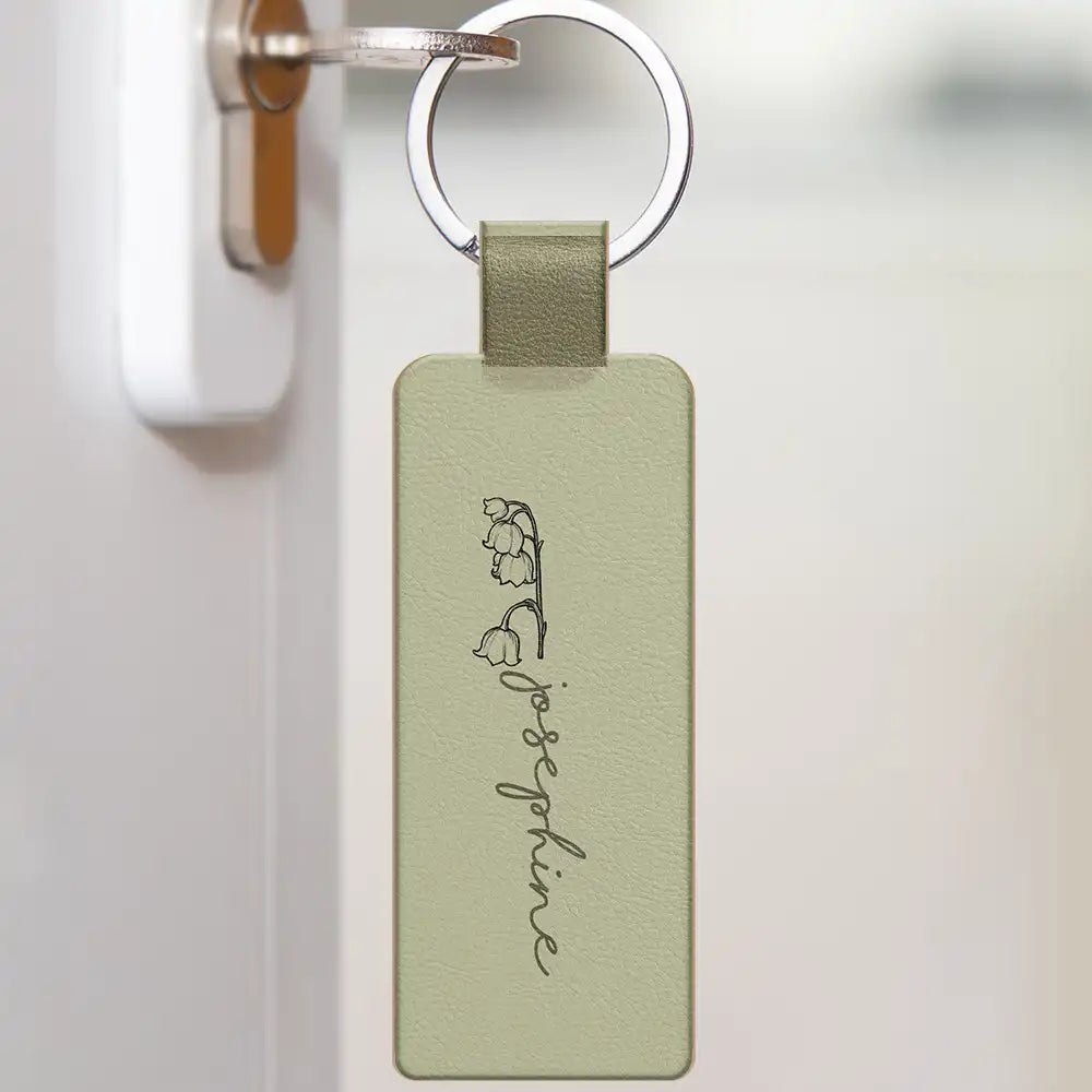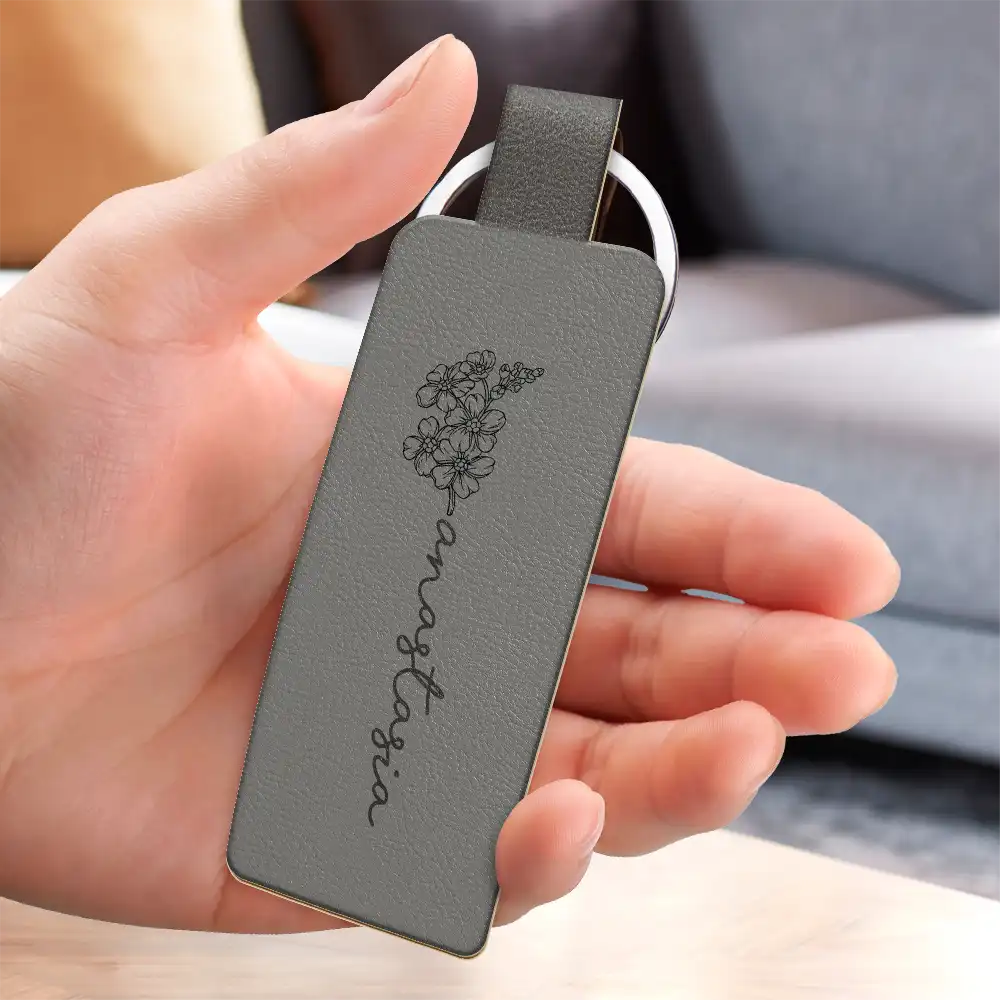 Birth Month Flowers Sketch Bloom Where You're Planted - Personalized Custom Shaped Leather Keychain