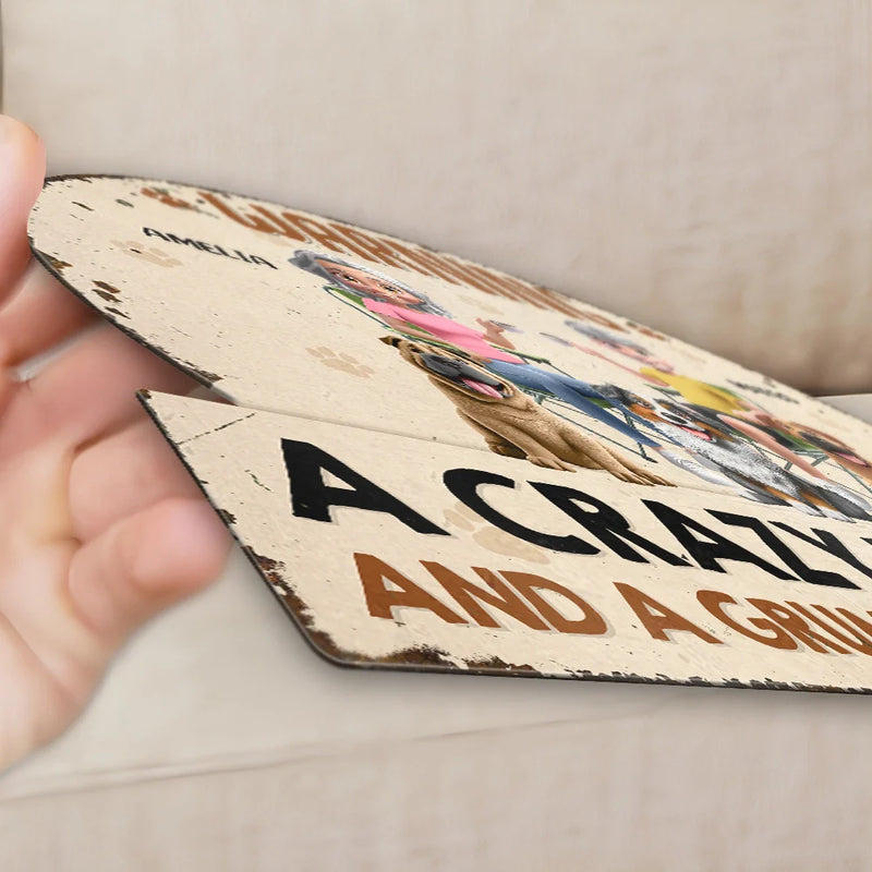 Beware A Crazy Dog Lady And Grumpy Old Man Live Here - Personalized Custom Shaped Metal Sign